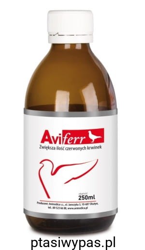 Właściwości i działanie: AviFerr to precyzyjnie zbilansowany preparat przeznaczony dla gołębi sportowych oraz piskląt. Preparat pobudza układ krwiotwórczy do syntezy hemoglobiny zwiększając tym samym udział czerwonych krwinek, co dodatnio wpływa na wymianę gazową w płucach i zapewnia lepsze utlenowanie krwi. Dodatkowo preparat stymuluje procesy energetyczne, metabolizm tłuszczów i węglowodanów oraz syntezę białek, co dodatnio wpływa na wzrost i rozwój piskląt a także poprawia osiągi lotowe gołębi.