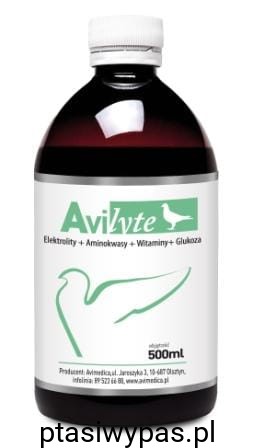 Właściwości i działanie: AviLyte to szybko wchłanialny z przewodu pokarmowego elektrolit. Poprzez wyrównanie gospodarki jonowej zapewnia regenerację gołębi po lotach i sytuacjach stresowych - transport, wystawy. Wzmacnia organizm gołębi i skraca okres rekonwalescencji przy biegunkach spowodowanych zatruciami, chorobami wirusowymi i bakteryjnymi. Aminokwasy, sole mineralne i witaminy zawarte w preparacie są szybko wchłaniane z przewodu pokarmowego. Dzięki temu zapewniają błyskawiczny powrót do formy, regenerację gołębi po lotach, a poprzez wyrównanie gospodarki wodno – elektrolitowej wzmacniają organizm gołębi i zapobiegają odwodnieniu. Zawarte w AviLyte cukry proste w łatwy sposób wchłaniają się z przewodu pokarmowego do krwi, dostarczając gołębiom wyczerpanym lotami, transportem na wystawy lub chorobami przebiegającymi z biegunką dużą dawkę energii.