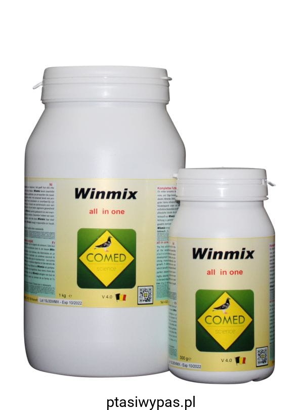 Pierwsza kompletna formuła. Zawiera wszystkie potrzebne witaminy i pierwiastki śladowe dla gołębi pocztowych. Winmix zawiera wszystkie istotne aminokwasy, minerały, elektrolity i bufory kwaśnego pH, co odpowiednio stymuluje florę jelitową. Zawiera także białka, które stanowią podstawowy budulec mięśni i są niezbędne podczas okresu rozpłodowego. Innymi składnikami są włókna roślinne, ekstrakty roślinne, które zapewniają równowagę podczas trawienia i wpływają pozytywnie na zdrowie gołębi. Każdy składnik Winmixu jest perfekcyjnie zbilansowany, co gwarantuje równowagę. Ponadto, składniki te są w bardzo przyswajalnych formach, co daje nam 100% efekt. Winmix utrzymuje nasze gołębie w wysokiej formie