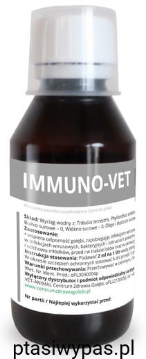 Instrukcja stosowania: Podawać 2 ml na 1 litr wody pitnej (20 gołębi) lub 4 ml na 1 kg karmy przez okres 3 – 5 dni. W okresie szczepień ochronnych stosować 5 dni przed i 5 dni po szczepieniu.