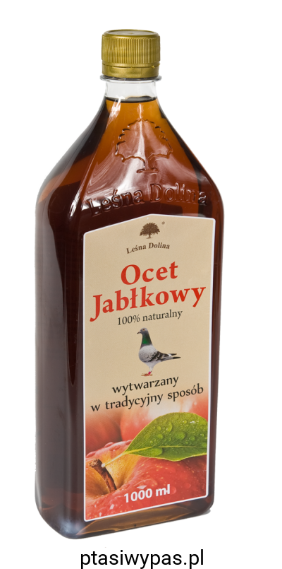 DAWKOWANIE: Zwykle stosuje się ocet jabłkowy 2 – 3 razy w tygodniu 1 łyżkę stołową na 1 litr wody. W przypadku wizualnie gorszej formy gołębi, przed lęgami i sezonem lotowym, przed intensywnym pierzeniem, po leczeniu schorzeń przebiegających z biegunką ocet powinien być podawany przez 7 – 10 dni w/w dawce. Może być podawany łącznie z preparatami witaminowymi i probiotykami w dawkach zalecanych przez producentów.