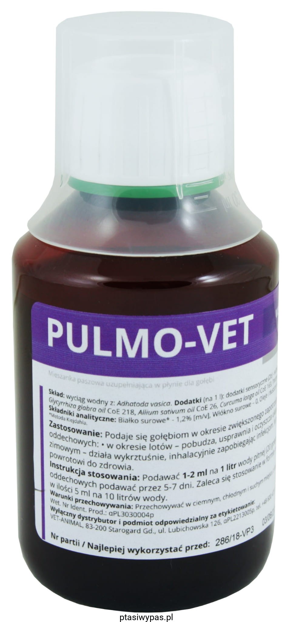 Podaje się gołębiom w okresie zwiększonego zapotrzebowania jako wspomaganie profilaktyczne i interwencyjne dróg oddechowych: