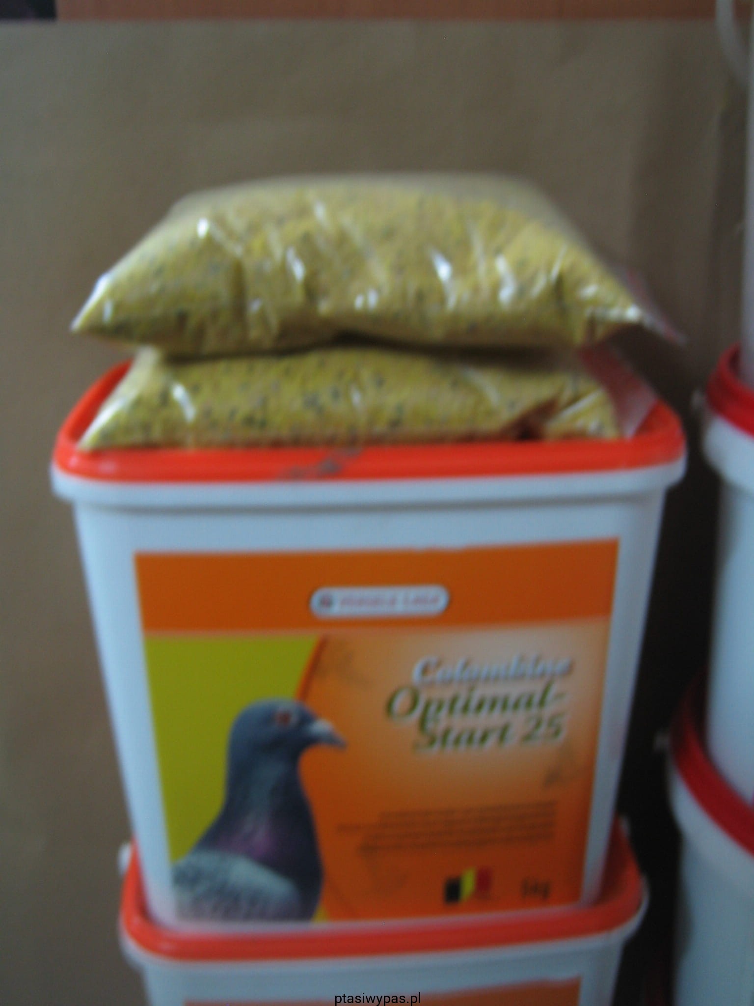 Optimal-Start 25 jest proteinowym suplementem w postaci proszku dla gołębi lęgowych i dla gołębi młodych. Preparat zawiera 25 % protein oraz jest bogaty w witaminę E. Sposób stosowania Preparat służy do podawania gołębiom przeznaczonym do lęgu w najbliższej przyszłości – zaczynając na miesiąc przed parowaniem. Gwarantuje skuteczne zapłodnienie. Podawać codziennie w ilości około 10 łyżek Optimal-Start 25 na karmnik dla 20 gołębi. Po odstawieniu piskląt od rodziców podawać tę samą ilość gołębiom młodym. Odświeżać codziennie. Składniki analityczne Białko 25 % Tłuszcz 7 % Minerały 7 % Błonnik 3,5 % Wapń 1,2 % Fosfor 0,65 % Sód 0,15 % Lizyna 1,2 % Metionina 0,4 % Dodatki dietetyczne Witamina A 25.000 j.m./kg Witamina D3 1.300 j.m./kg Witamina E 200 mg/kg E2 - Jod (jodan wapnia, bezwodny) 2 mg/kg E4 - Miedź (siarczan miedzi(II) pentahydrat) 10 mg/kg E5 - Mangan (tlenek manganawy) 100 mg/kg E6 - Cynk (tlenek cynku) 97 mg/kg E8 - Selen (selenin sodu) 0,2 mg/kg Dodatki zootechniczne E1606 - Endo-1,4-β-ksylanaza 100 mg/kg Skład Bułka tarta Mączka sojowa Proteiny sojowe Kukurydza Gluten kukurydziany Tłuszcze zwierzęce Olej roślinny Cukry Kanar Szafran łąkowy Białe proso Niger Konopie Wodorowęglan sodu